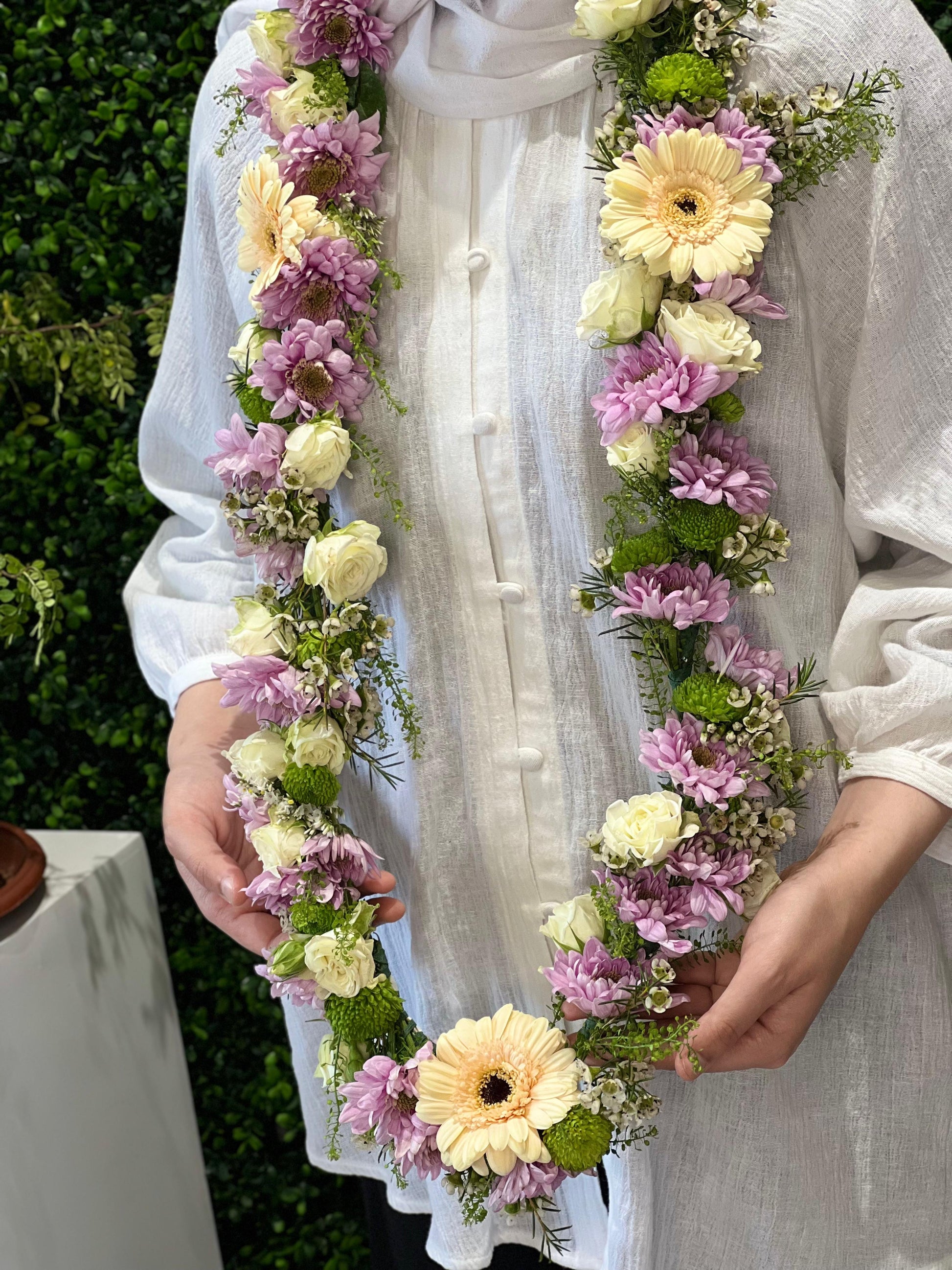 This Garland is made of gerbera, crysenthemum and baby roses.