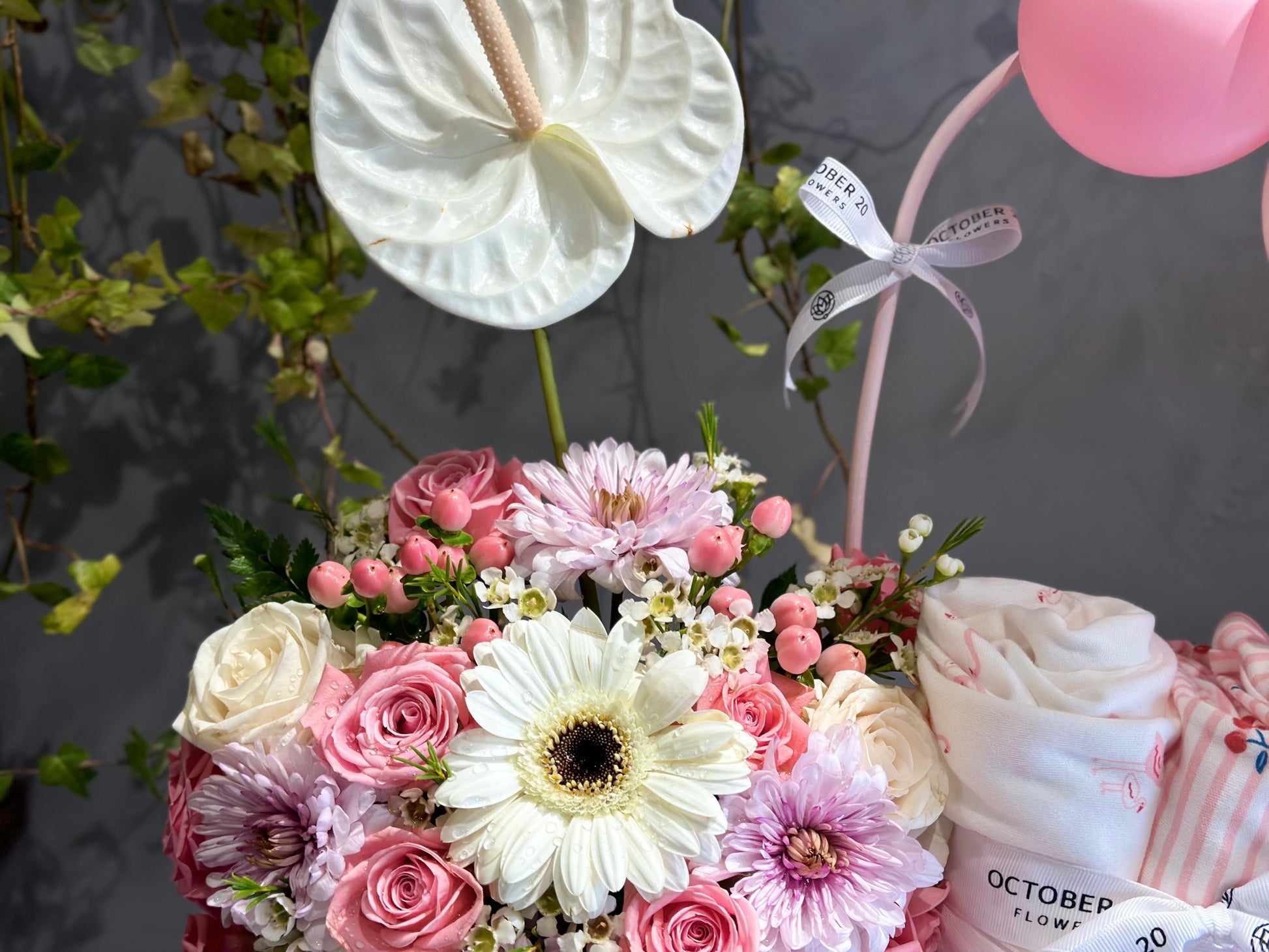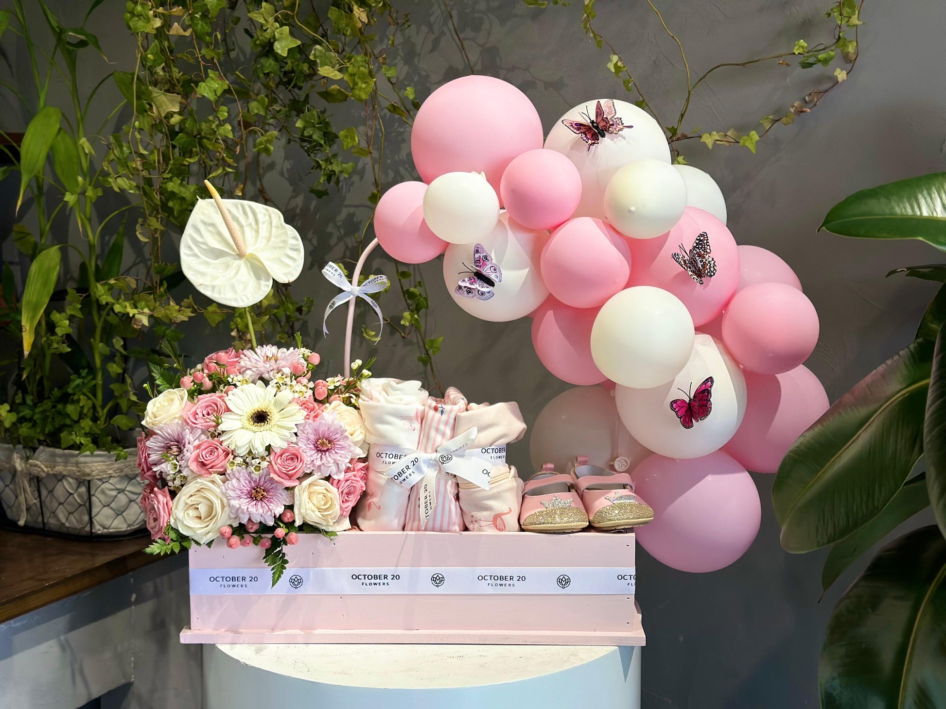 Welcome your little one with Sweet Beginnings pink! This precious set includes beautiful flowers, charming baby girl gifts, and playful balloons, perfect for celebrating the arrival of your newborn. Share the joy with loved ones and let the love blossom with Sweet Beginnings.